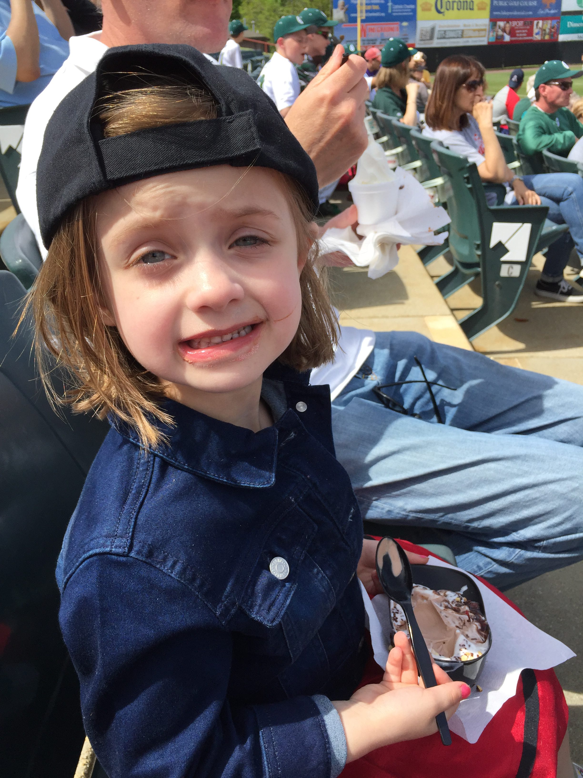 Earlier this month, Mike and ‘lil q took me to a baseball game for my birthday. It was rather miraculous because we’d had like twenty days of rain interrupted by one really nice day – the day they took me to the game. Baseball was/is one of the true loves in my life. If I could have picked what I’d be when I was born, I’d have wanted to be a pro baseball player. Alas, they don’t give you a checklist and say mark what you like.