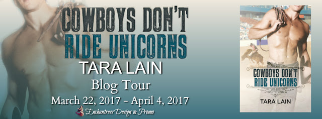 Hi everyone. I’m so happy to be here. I’m Tara Lain and I write the Beautiful Boys of Romance. Today, I’m celebrating the addition of some new gorgeous guys to my pantheon in a book called Cowboys Don’t Ride Unicorns. It’s my second ever cowboy romance and my first bull rider. In this story, my hunky bull rider meets his “unicorn”, a beautiful, androgynous, pink-haired interior decorator who likes to top! He’s not only a rare unicorn, he’s very much a Tara Lain Beautiful Boy.