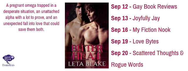 This gay romance novel by Leta Blake is the third in the Heat of Love universe which began with Slow Heat. It’s 111,000 words, with a strong happy ending and a critically-acclaimed, non-shifter Omegaverse. It features alphas, betas, omegas, male pregnancy, mpreg, heat, and knotting. Content warning for a violent and oppressive society regarding reproductive rights.